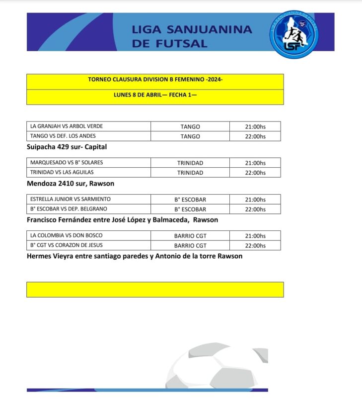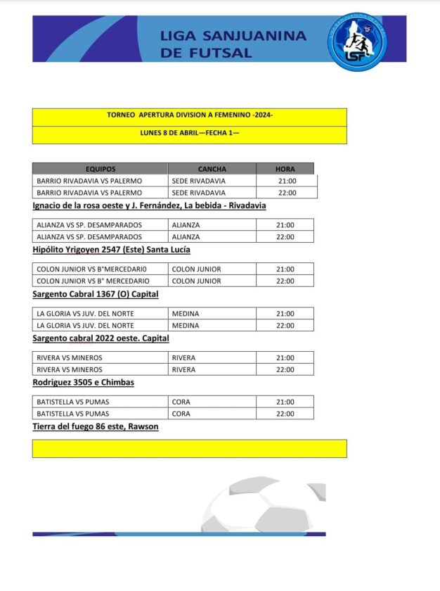 Ahora sí vuelve la actividad para las damas sanjuaninas en el futsal. Luego de que se programara la fecha hace dos semanas, pero hubo problemas con los aranceles de los árbitros así que debió suspenderse, siete días después vino el fin de semana extra largo sin ningún deporte por falta de policías para los operativos, así luego de dos postergaciones vuelve a rodar la pelota.