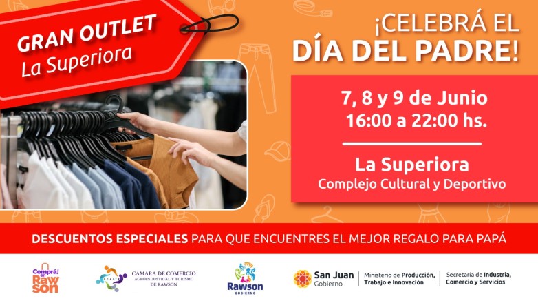 El complejo Deportivo y Cultura La Superiora nuevamente será escenario de otra edición del Outlet, con temática especial por el Día del Padre, los días 7, 8 y 9 de junio de 16 a 22 hs.