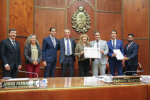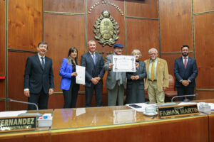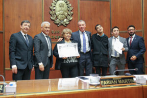 El homenaje fue llevado a cabo durante la Primera Sesión Especial que estuvo encabezada por el señor vicegobernador Fabián Martín. Acompañaron los secretarios Legislativo, Gustavo Velert; y Administrativo, Jorge Fernández.