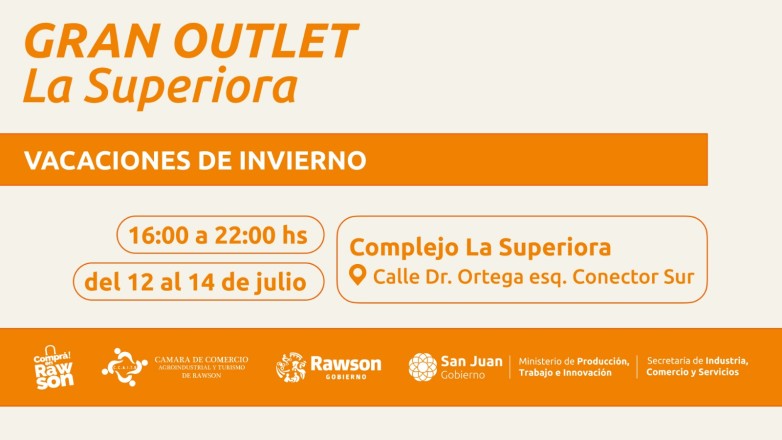 En ocasión de las vacaciones de invierno, el complejo Deportivo y Cultural La Superiora será el lugar donde se desarrollará la sexta edición del oultet que se llevará a cabo los días 12, 13 y 14 de julio, de 16 a 22 hs.