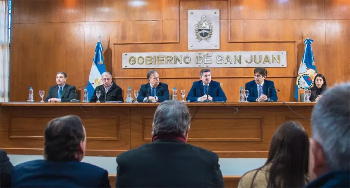 Lo hizo desde Casa de Gobierno, con la presencia del Ministro de Economía, Finanzas y Haciendas, Roberto Gutiérrez; el Ministro de Infraestructura, Agua y Energía, Fernando Perea; el Secretario general de la Gobernación, Emilio Achem; el Director de Vialidad provincial, Omar Lucero; la Escribana Mayor de Gobierno, Mayra María Eugenia Mancini y todos los intendentes de San Juan.