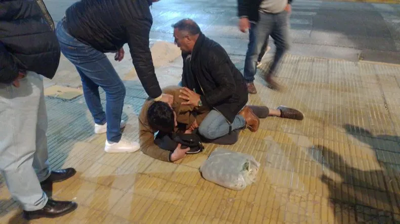 Se trata de un hombre identificado como Federico «Conejo» Marín San Román. El sujeto lanzó el huevazo, que rozó a Sergio Uñac, Graciela Seva y a Juan Carlos Quiroga Moyano, quienes no entendían mucho lo que pasaba.
