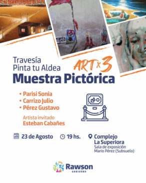 a Municipalidad de la Ciudad de Rawson, a través de la Dirección de Cultura, tiene el agrado de invitar a toda la comunidad a la inauguración de la muestra pictórica «Travesía: Pinta tu Aldea – ART x 3». El evento se llevará a cabo este viernes 23 de agosto a las 19:00 horas en la Sala de Exposición Mario Pérez, ubicada en el subsuelo del Complejo La Superiora.