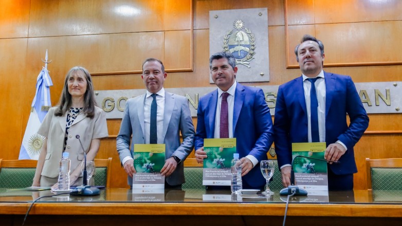 En la jornada de este jueves 19 de septiembre, el gobernador Marcelo Orrego presentó el Plan Integral Provincial para el abordaje de Dengue, Chikungunya y Zika 2024-2025. Lo hizo acompañado por el ministro de Salud, Amilcar Dobladez.