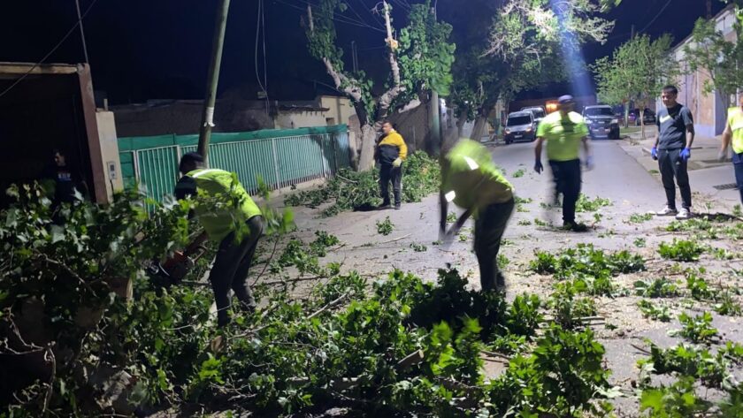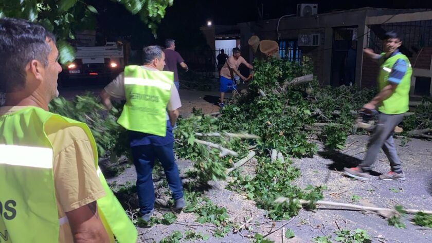 Este lunes desde las 15 y hasta pasadas las 23 hs, los agentes municipales de Servicios y Ambiente, montaron un trabajo integral de despeje de espacios públicos tras las ráfagas de más de 70 kms/h que azotaron la provincia.