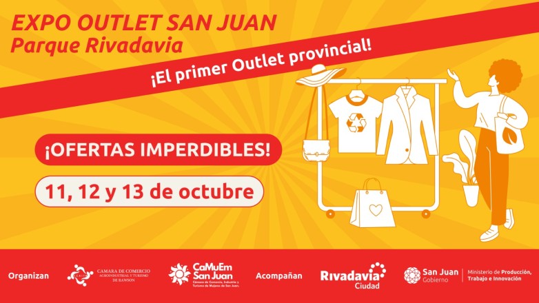 Los próximos días 11, 12 y 13 de octubre se realizará la 1° Expo Outlet Provincial, en el Parque Rivadavia con la participación de unos 120 comerciantes. El grueso de las ventas estará puesto en prendas para esta estación y regalos para el día de la madre.