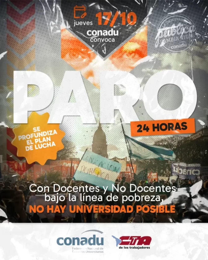 Este Lunes, Jaime Barcelona, secretario general de ADICUS, confirmó que este jueves 17 de octubre se llevará a cabo un nuevo paro universitario por 24 horas. Con la medida de acción confirmada, esta semana se definirá el plan de lucha a seguir, donde todas las opciones estarán puesta sobre la mesa.