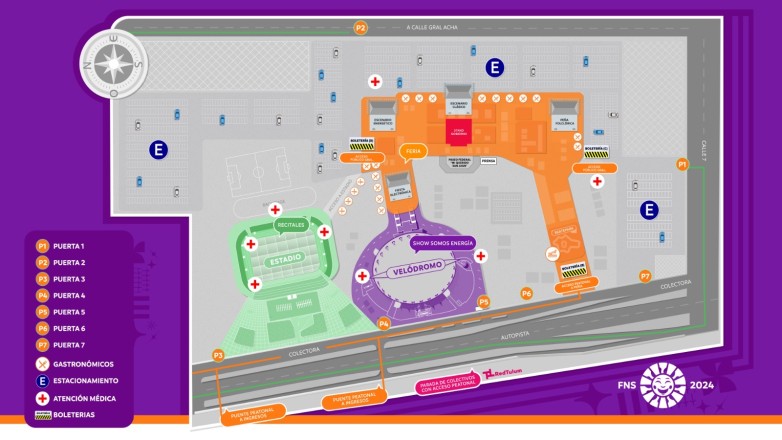 - La puerta 1 está ubicada en calle 7, a metros se encuentra la boletería C que permite el ingreso al público general a la feria y conecta con el escenario local La Peña.
