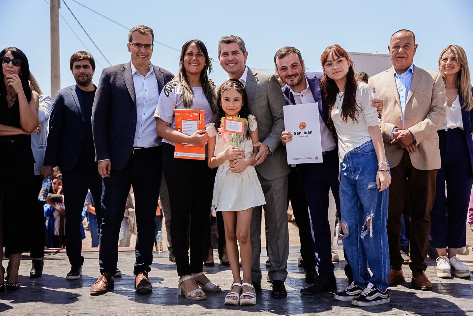 El primer mandatario dijo además que “hoy es un día de mucha felicidad, ya que entregamos 135 viviendas a familias que llevaban años esperando. Esto refleja nuestro compromiso con la obra pública como política de Estado. A pesar de no contar con las mismas herramientas que gestiones anteriores, como transferencias discrecionales o subsidios, hemos logrado mantener nuestras metas gracias al esfuerzo de los sanjuaninos”.