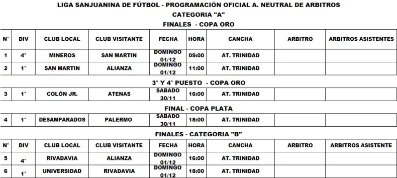 Este fin de semana se juegan las finales del fútbol femenino de Liga Sanjuanina de Fútbol. San Martín y Alianza serán los equipos protagonistas de la Copa Oro. Las verdinegras y las lechuzas se medirán el domingo 1 de diciembre, desde las 11, en cancha de Trinidad. La institución ganadora alzará el máximo trofeo de la Copa Oro del Clausura.