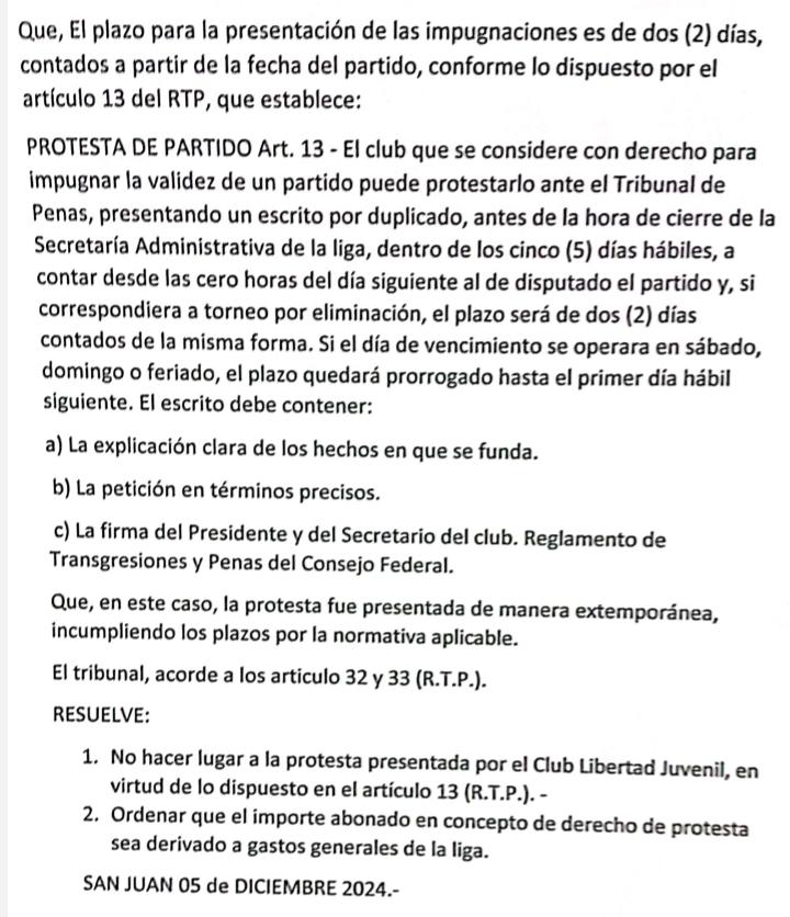 Hace semanas el elenco de Zonda había logrado el segundo ascenso a la primera división del fútbol sanjuanino, derrotando a Libertad Juvenil, justamente este último presentó una protesta por una mala inscripción en el pase de un jugador de Sarmiento que puso en duda y a trabajar al tribunal de disiplina. En las últimas horas realizó su resolución no dando lugar a la protesta, confirmando el ascenso para los zondinos.