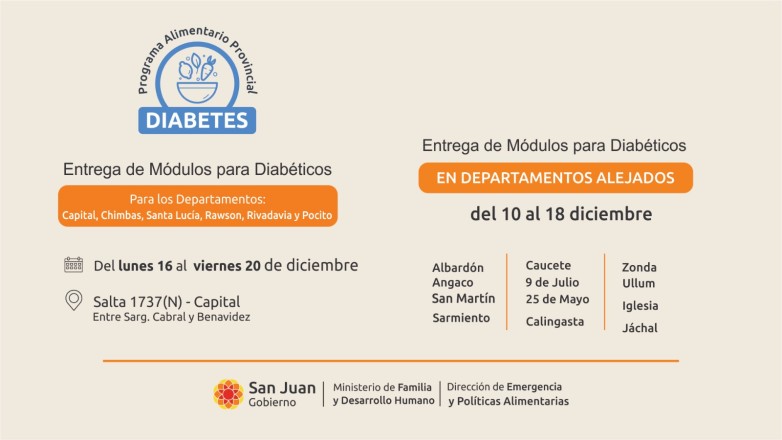 Por otra parte, la Dirección de Emergencia y Políticas Alimentarias informó a la comunidad el nuevo calendario de entrega de módulos alimentarios para personas con diabetes.