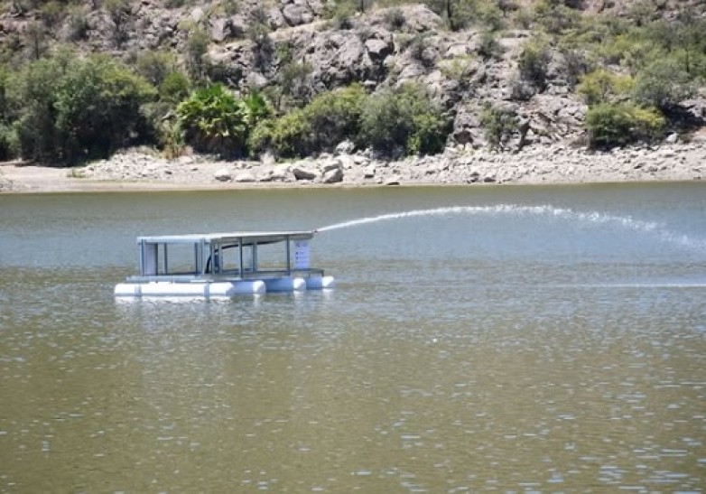 El sistema, alimentado por energía solar, opera de forma autónoma y continua, evitando la necesidad de intervención humana. Este dispositivo representa una solución tecnológica de última generación que no solo mejora la calidad del agua, sino que también establece un modelo sostenible para la gestión de recursos hídricos.