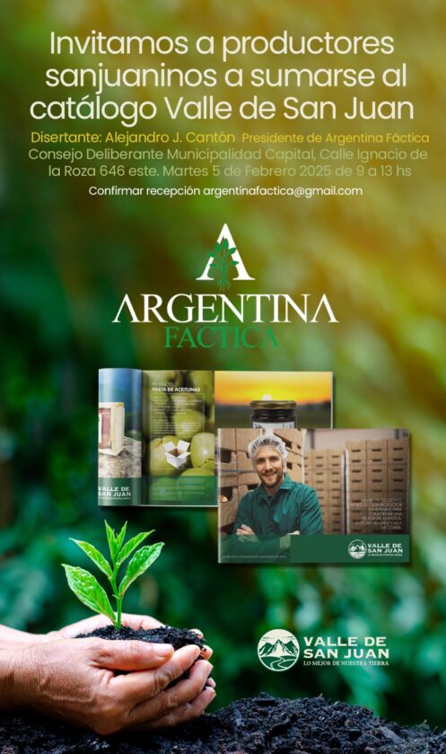 Los productores sanjuaninos tienen una gran oportunidad de llevar sus productos a nuevos mercados nacionales e internacionales. Pueden sumarse al catálogo “Valle de San Juan” con el objetivo antes mencionado.