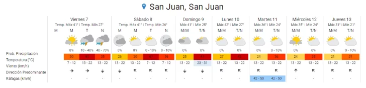 Para este viernes, sábado y domingo, la máxima prevista superará los 41°C, mientras que el lunes será el día más agobiante, con una marca de 42°C. Las noches tampoco darán respiro, ya que la temperatura mínima rondará los 25°C, impidiendo que el ambiente se refresque.