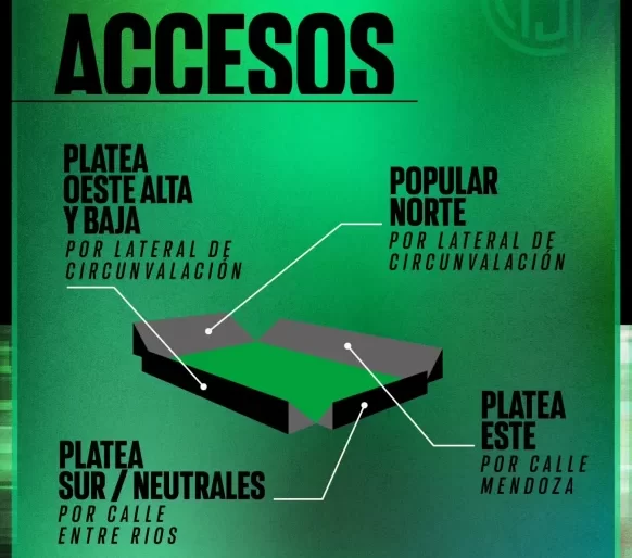 Teniendo en cuenta que habrán neutrales, los hinchas que asistan a la Platea Oeste, Alta y Baja, ingresarán por otro sector. No será por calle Lautaro sino que lo harán por el Lateral de Circunvalación. Los neutrales que se ubicarán en la Platea Sur harán su ingreso por calle Entre Ríos y Lautaro. Los hinchas de San Martín que asistan a la Popular Norte deberán ingresar por el Lateral, mientras que quienes opten por la Platea Este harán su ingreso por calle Mendoza.