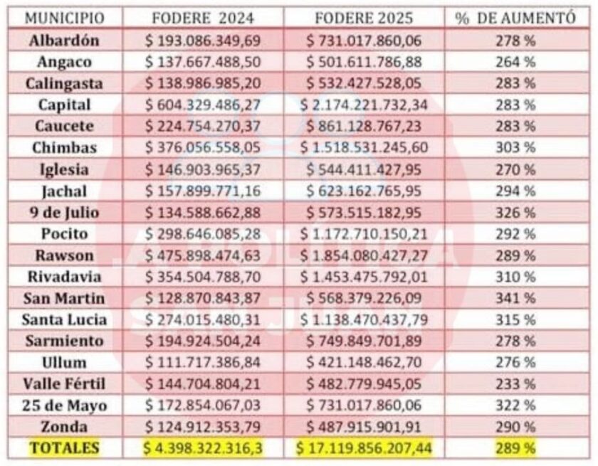Según cálculos estimados, a diferencia del 2024, el FODERE se incrementó casi en un 290%, superando indiscutiblemente la inflación del 117% anual del año que pasó
