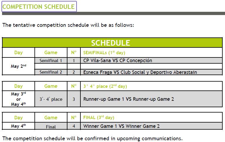 Los ganadores jugarán la final el día 4 de mayo, en tanto que los perdedores se enfrentarán para definir el 3º y 4º puesto del torneo
