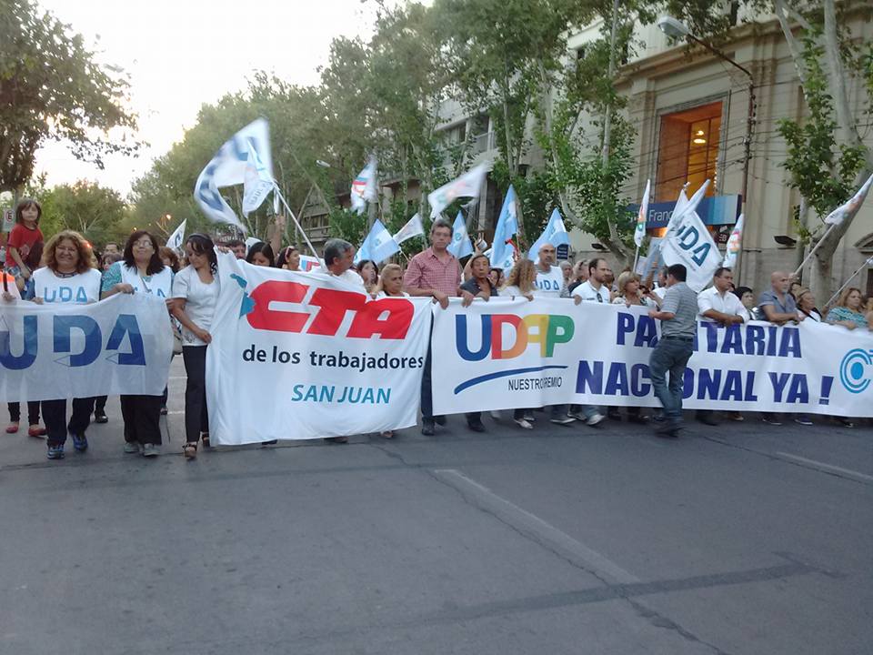 La ministra de Educación de San Juan, Silvia Fuentes, se pronunció públicamente sobre la medida de fuerza que los docentes han convocado para el próximo 5 de marzo: «Dado lo sucedido en las últimas horas, se realizará el descuento. Por ahora, solo el correspondiente al paro del 5 de marzo. Siempre hemos estado cerca para resolver los problemas del sector. No sé si hay un análisis detrás de esta medida, pero los docentes son inteligentes y pueden comparar sus recibos de sueldo con los del año pasado. Nunca hubo demoras en los pagos.»