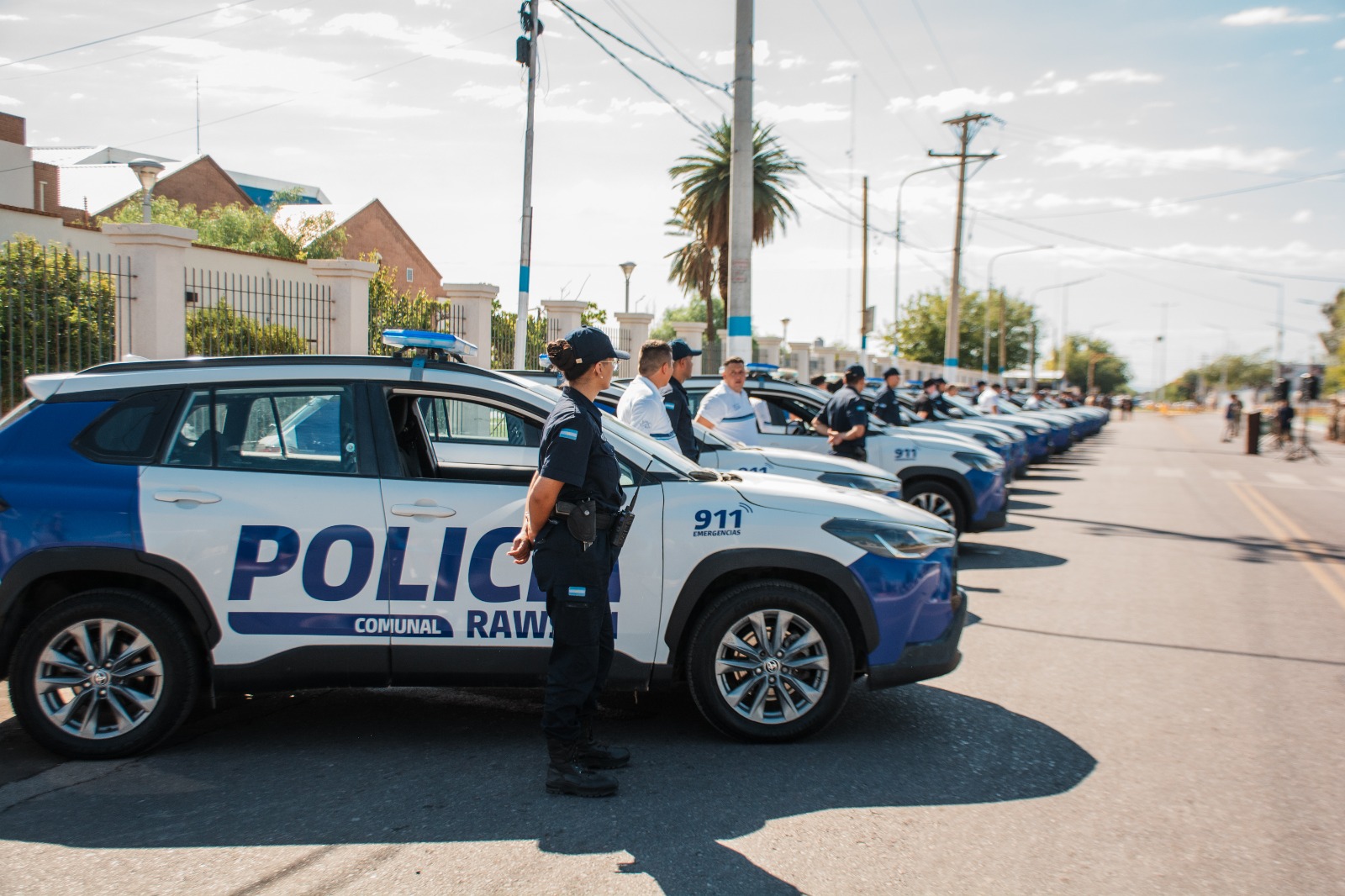 En un importante avance para la seguridad del departamento, el intendente de Rawson, Carlos Munisaga, presentó la nueva flota de la Policía Comunal, compuesta por veinte modernas unidades Toyota Cross adquiridas a través de un convenio con el Municipio de Ezeiza.