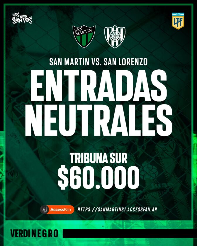 Podés comprar online en http://sanmartinsj.accessfan.ar/eventos