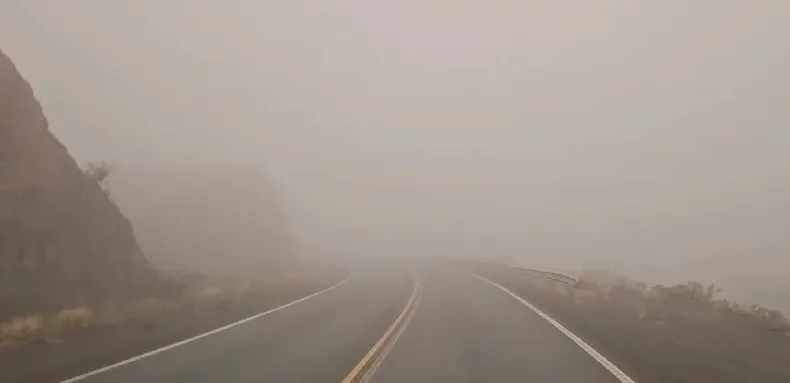 - Ruta Nacional 20 (San Juan – San Luis, El Encón): Transitable, pero se sugiere precaución en áreas abiertas donde la neblina puede ser más densa.