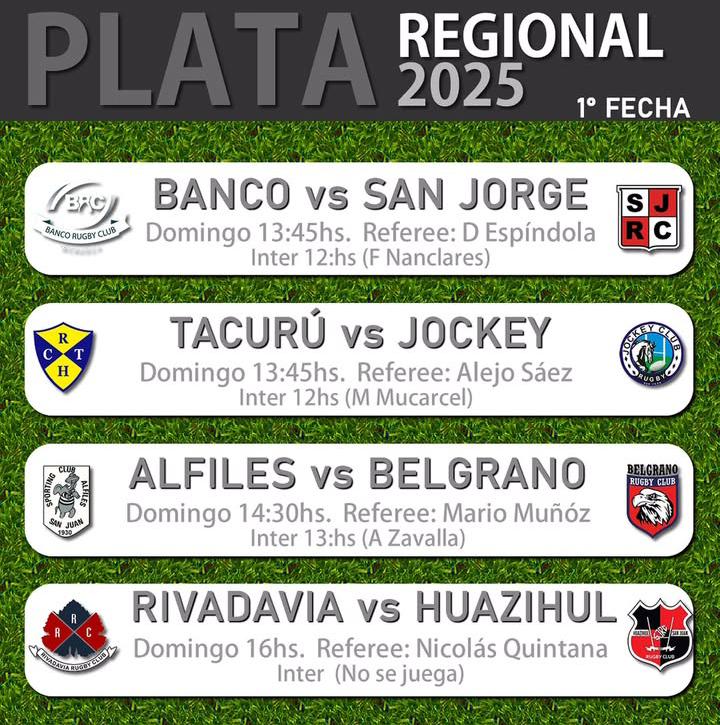 Comienzo: 06/04/2024 Finaliza: 10/08/2024. Los equipos de Copa de Plata deben jugar con 1ra e Intermedia (Reglamento General de Competencia 2024).