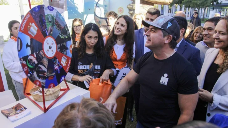 El gobernador Marcelo Orrego estuvo en la antesala de la corte de cinta de la Expo IronMan 70.3 que se desarrolla en el estacionamiento del Teatro del Bicentenario. En ese lugar, empresas locales exhiben la oferta exportable de San Juan. Además, se dictarán charlas sobre emprendedurismo, salud y nutrición.