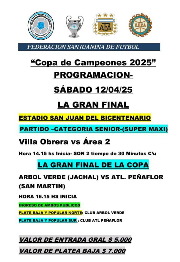 La federación sanjuanina de fútbol, organizadores del torneo ya habían dado a conocer detalles de la final, ahora también terminó de confirmar precios de entradas y ubicaciones de las parcialidades: