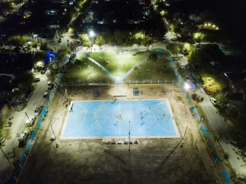 «Es una alegría compartir este momento con una comunidad hermosa, que no se queda quieta, que todos los días se organiza y trabaja por el bien común», expresó Munisaga al dirigirse a los presentes. El dirigente oficializó las intervenciones integrales que forman parte del Plan de Obras de Infraestructura Social Básica, que incluyeron la renovación total del sistema de iluminación con tecnología LED, mejoras en la plaza y la puesta en valor del playón polideportivo.