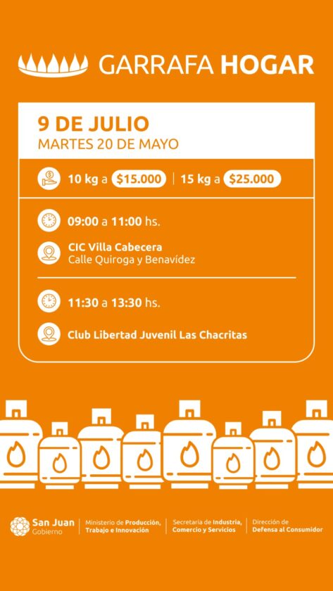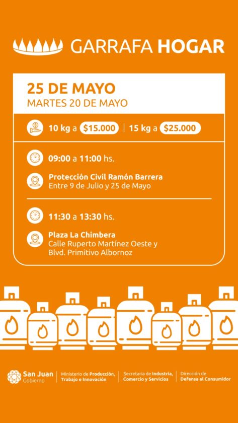 El Gobierno de San Juan, por indicación del gobernador Marcelo Orrego, anunció el relanzamiento del programa “Garrafa Hogar 2025”, destinado a familias que no cuentan con conexión a la red de gas natural. El programa busca garantizar el acceso a gas envasado a un precio más accesible, anticipándose a la llegada del invierno.