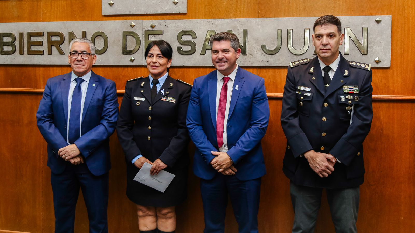 En su alocución, Orrego felicitó a ambos funcionarios y destacó sus méritos: “Confío enormemente en ustedes trabajarán para que tengamos fuerzas de seguridad que cada día avancen más en la misión de proteger a toda la sociedad sanjuanina”.