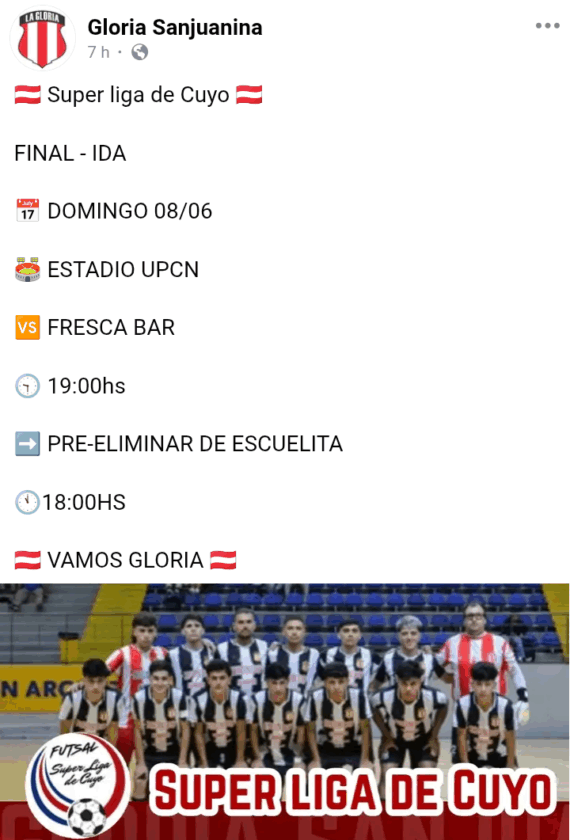 La primera final será en nuestra provincia, nuevamente en cancha de UPCN como lo hizo en semifinales, siendo anfitrión La Gloria, mientras que la vuelta será el próximo fin de semana en Villa Mercedes, provincia de San Luis, donde Frescas Bar hará de local en duelo definitivo por el título.