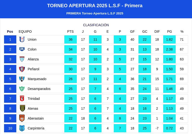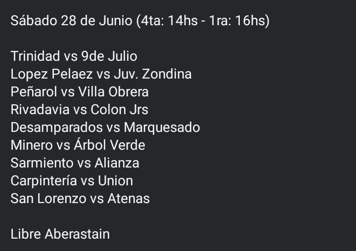 La definición será electrizante. En la última fecha, Unión visitará a Carpintería, que necesita sumar para no perder su lugar en los playoffs. Por su parte, Colón irá a La Bebida para enfrentar a Rivadavia con la obligación de ganar y esperar un traspié del líder. Juventud Zondina, en tanto, jugará en Alto de Sierra ante López Peláez, con la esperanza de meterse entre los ocho mejores.