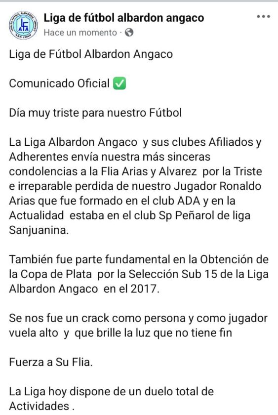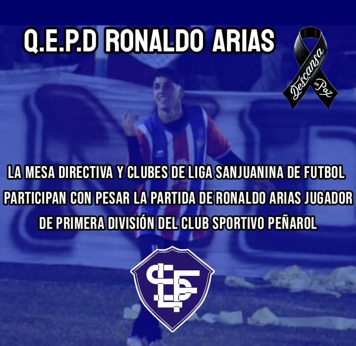 Causó conmoción la noticia del fallecimiento de Ronaldo Arias, jugador de Peñarol de San Juan. Tenía 21 años y murió por un infarto.
