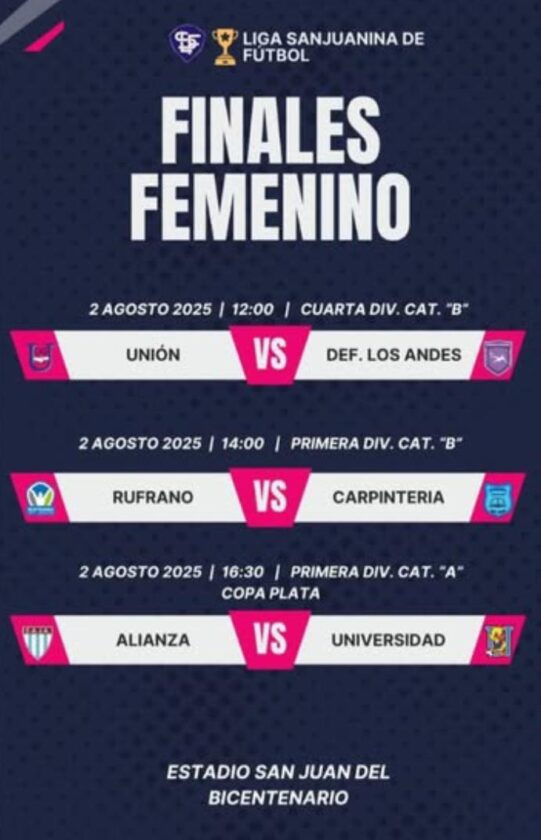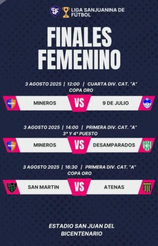 Ahora si la liga sanjuanina de fútbol dió a conocer oficialmente y con todos los detalles de lo que serán las finales para conocer a las primeras campeonas de este 2025 en la provincia.