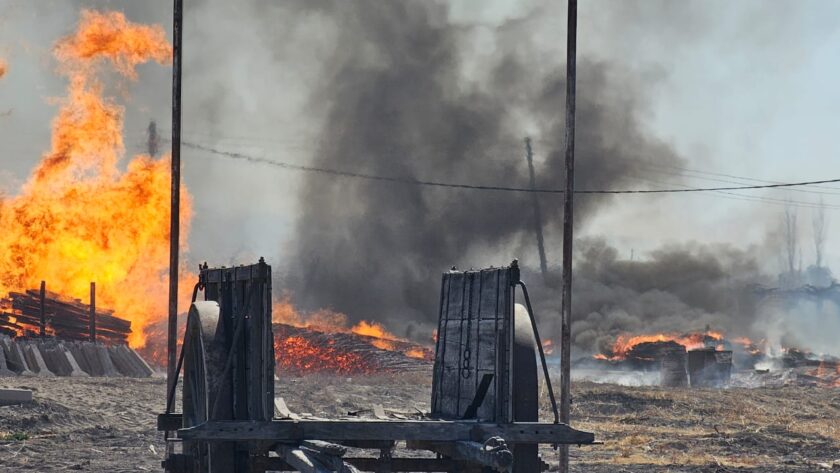 En horas de la tarde, un voraz incendio se desató en una finca ubicada sobre Avenida de los Ríos, en Caucete, justo detrás del conocido boliche El Cortijo. El fuego, de grandes dimensiones, consumió rápidamente un sector donde se encontraban almacenados palos de producción agrícola y amenazó con alcanzar un galpón ubicado a pocos metros.