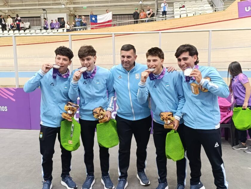 Mateo Duque, Santiago Gruñeiro, el sanjuanino Ramiro Videla y Agustín Ferrari fueron los encargados de conseguir la primera medalla de plata para la selección de pista, tras lograr un registro de 4m 10s 138 en la clasificación, llegaron a la final para medirse ante Chile (4m 03s 878).