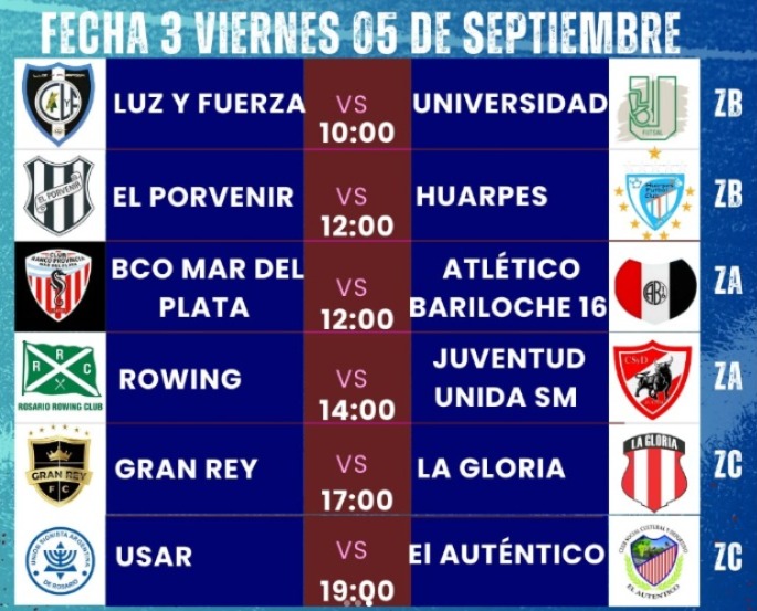 Del miércoles 3 hasta el domingo 7 será la actividad, los dos primeros ascienden, además para que tengan en cuenta, la transmisión será por el canal de YouTube del Consejo Federal.