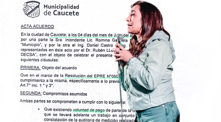 El 4 de julio de 2025, la Intendenta de Caucete, Romina Rosas, firmó un acta acuerdo con DECSA, la distribuidora de energía, donde se comprometía a pagar la deuda que el departamento mantiene con la empresa distribuidora de energía. Ahora se desdice y no quiere pagar.