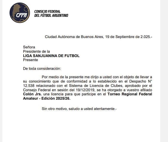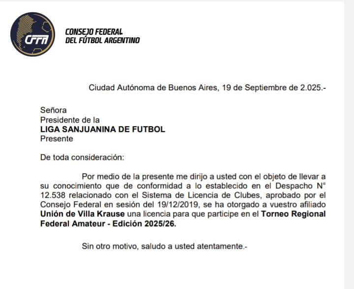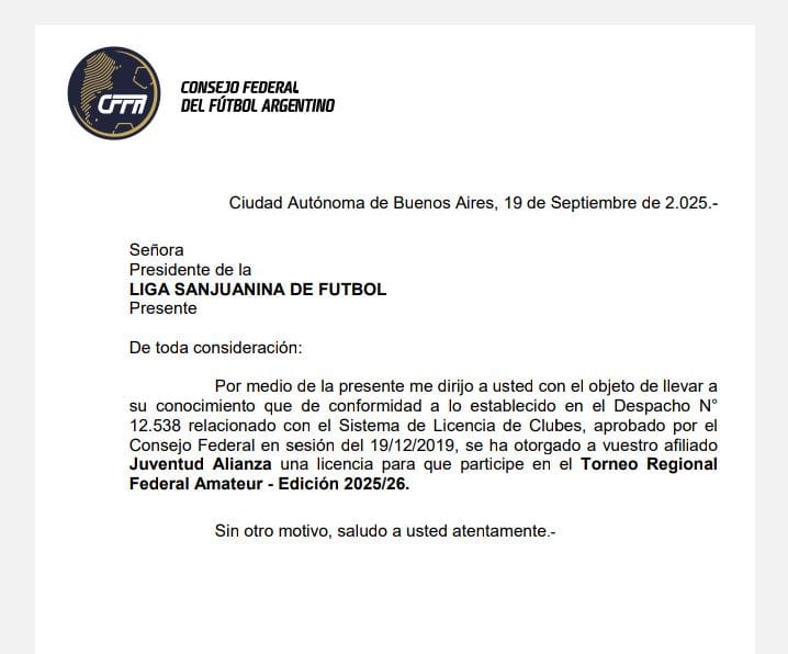 El Club Atlético de la Juventud Alianza anunció oficialmente que participará en la próxima edición del Torneo Regional Amateur 2025/26, tras recibir la licencia deportiva otorgada por el Consejo Federal de AFA. La confirmación fue comunicada este viernes a socios, hinchas y simpatizantes del Lechuzo, que de esta manera tendrá asegurada su presencia en la competencia más importante del fútbol del interior. Además de Alianza, también recibieron licencia los clubes Unión de Villa Krause y Colón Junior.