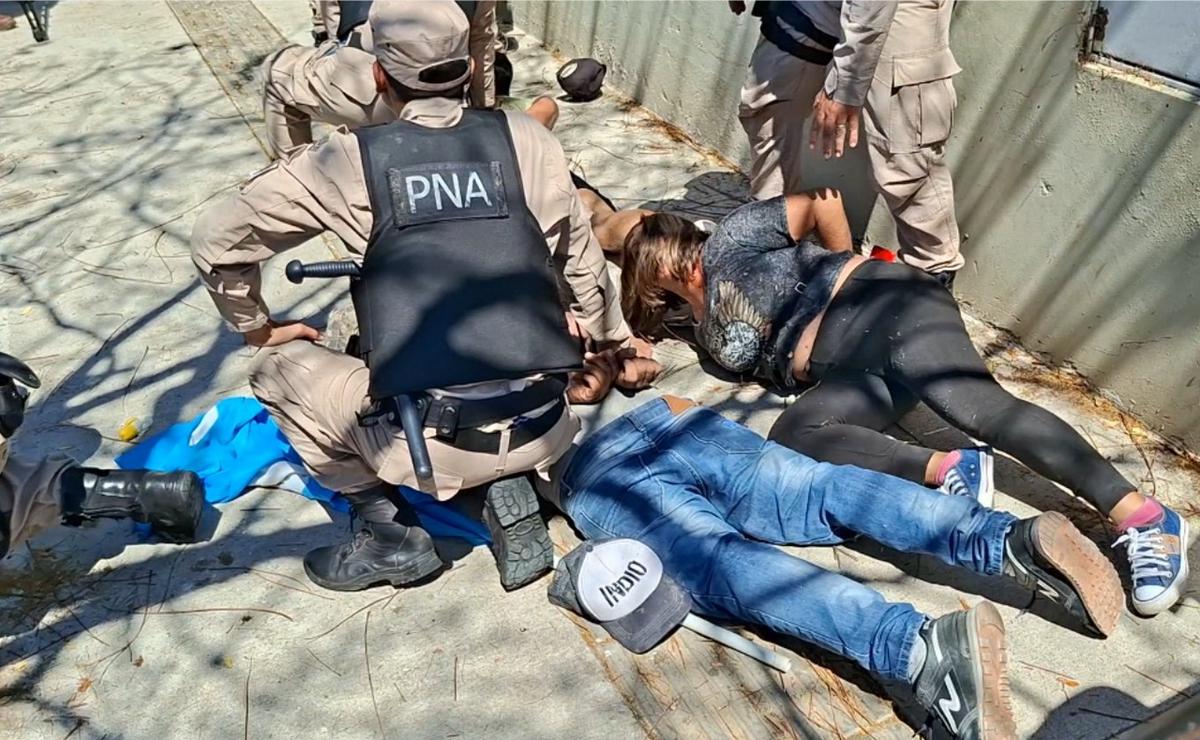 Tras su llegada, hubo disturbios en la puerta del hotel, donde partidarios libertarios se enfrentaron con grupos opositores a golpes de puño. Además, opositores al gobierno le tiraron piedras al vehículo en el que se transportaba Milei, cuando se retiró del lugar.