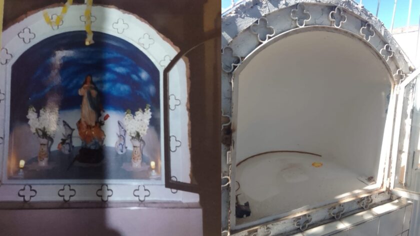 La figura llevaba más de 30 años en ese lugar y era un símbolo muy querido por la comunidad. Según informaron los vecinos, el hecho ocurrió durante la madrugada de hoy, cuando delincuentes violentaron la puerta de la gruta y se llevaron la imagen.