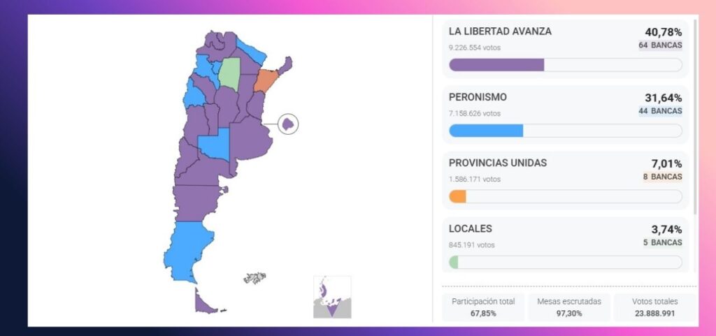 Con los votos que se registraron en 109.000 mesas escrutadas en alrededor de 17.500 establecimientos, a lo largo y ancho la Argentina, así se va pintando el país.