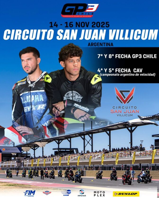 Del 14 al 16 de noviembre de 2025, el Circuito San Juan Villicum será escenario de una cita para el motociclismo regional. En una misma jornada, se disputarán la 7ª y 8ª fecha del GP3 Chile y la 4ª y 5ª fecha del Campeonato Argentino de Velocidad (CAV), reuniendo a los mejores pilotos de ambos países en un fin de semana lleno de adrenalina y velocidad.
