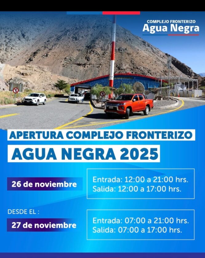 El Gobierno informó la puesta en funcionamiento del Complejo Fronterizo Agua Negra para la temporada estival 2025, una apertura muy esperada por turistas, transportistas y residentes que utilizan este corredor internacional para conectar San Juan con la Región de Coquimbo en Chile.