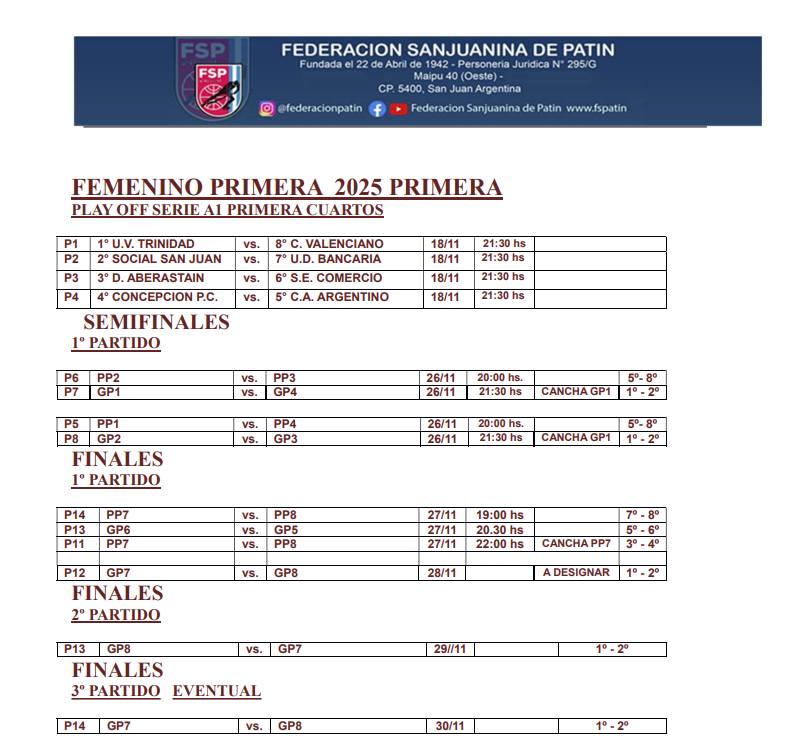 Este viernes 28 de noviembre, se jugará el primer partido de la gran final, en horario y cancha a designar. La revancha será el sábado 29, y un eventual 3º partido está previsto para el día domingo 30, de acuerdo a lo informado por la FSP en el boletín Nº 9 en la página oficial: