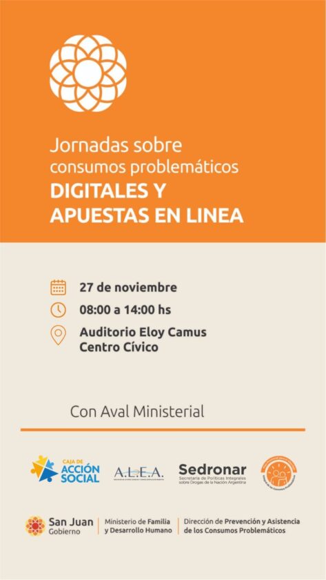 La Caja de Acción Social, en su rol de ente regulador de los juegos de azar en la provincia, coordina junto a ALEA y Sedronar la “Jornada de Capacitación sobre Consumos Problemáticos Digitales y Apuestas en Línea: Experiencias y Desafíos”, que tendrá lugar en la provincia de San Juan.