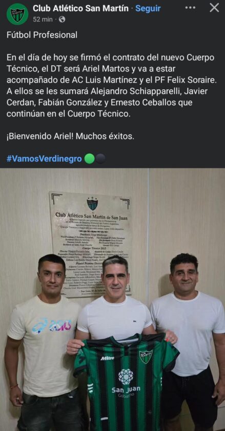 Martos llega con una trayectoria vinculada al trabajo en juveniles, procesos de formación y un fuerte conocimiento del fútbol de ascenso, características que encajan con el proyecto deportivo que busca impulsar la institución sanjuanina. Tras su último ciclo en Tucumán —donde dirigió 28 partidos con un balance positivo en puntos y rendimiento— quedó disponible en el mercado y rápidamente apareció en la agenda del club de Concepción.
