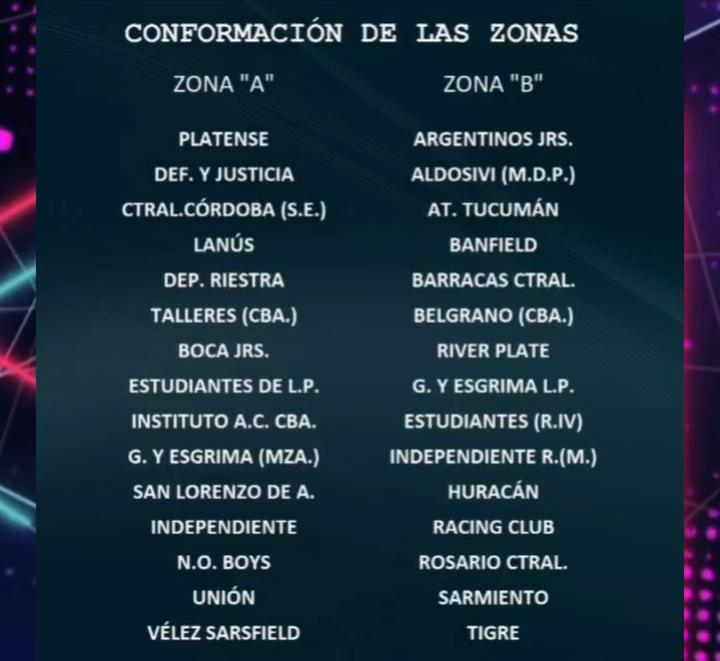 Luego de un día de espera al final salieron las zonas para la próxima temporada de la liga profesional del fútbol argentino, se jugará dividida en dos zonas, interzonales, luego playoffs, de la misma manera que la temporada que está por finalizar.